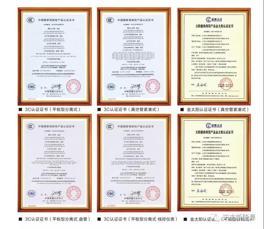 作為太陽能熱利用工程專業品牌,天豐早早攬獲“建筑機電安裝工程專業承包三級資質”、“太陽能熱利用工程設計、施工A級資質”等全品類產品資質加身,進一步夯實在太陽能陽臺壁掛領域市場的領軍地位。