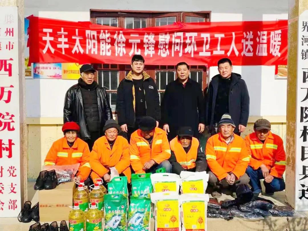 近日寒潮來襲、氣溫驟降,環衛工人作為城市的美容師,每天起早貪黑,用自己辛勤的汗水維護著干凈整潔的市容環境,為了表達對環衛工人辛苦付出的感謝,切實關心關愛環衛工人冷暖,2021年1月14日,天豐優秀代理商徐元鋒趕赴滕州,在嚴寒之際為環衛工人送去了特別的“溫暖”。